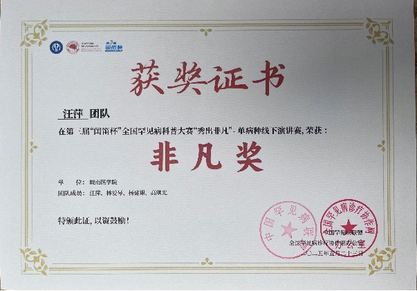 近日,2025年罕见病国际交流会(IRDCC)在海南省海口市举行,基础医学院医学生物学教研室汪萍、林爱琴两位老师参会,并荣获第三届“闰笛杯”全国罕见病科普大赛“秀出非凡”单病种线下演讲赛最高奖“非凡奖”。